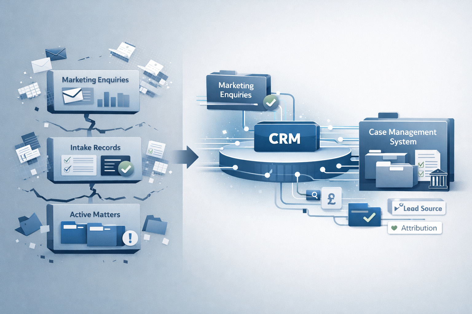 Second, Marketing loses visibility the moment an enquiry is passed to a fee earner or department. If it does not convert immediately into a Matter, it often disappears entirely.